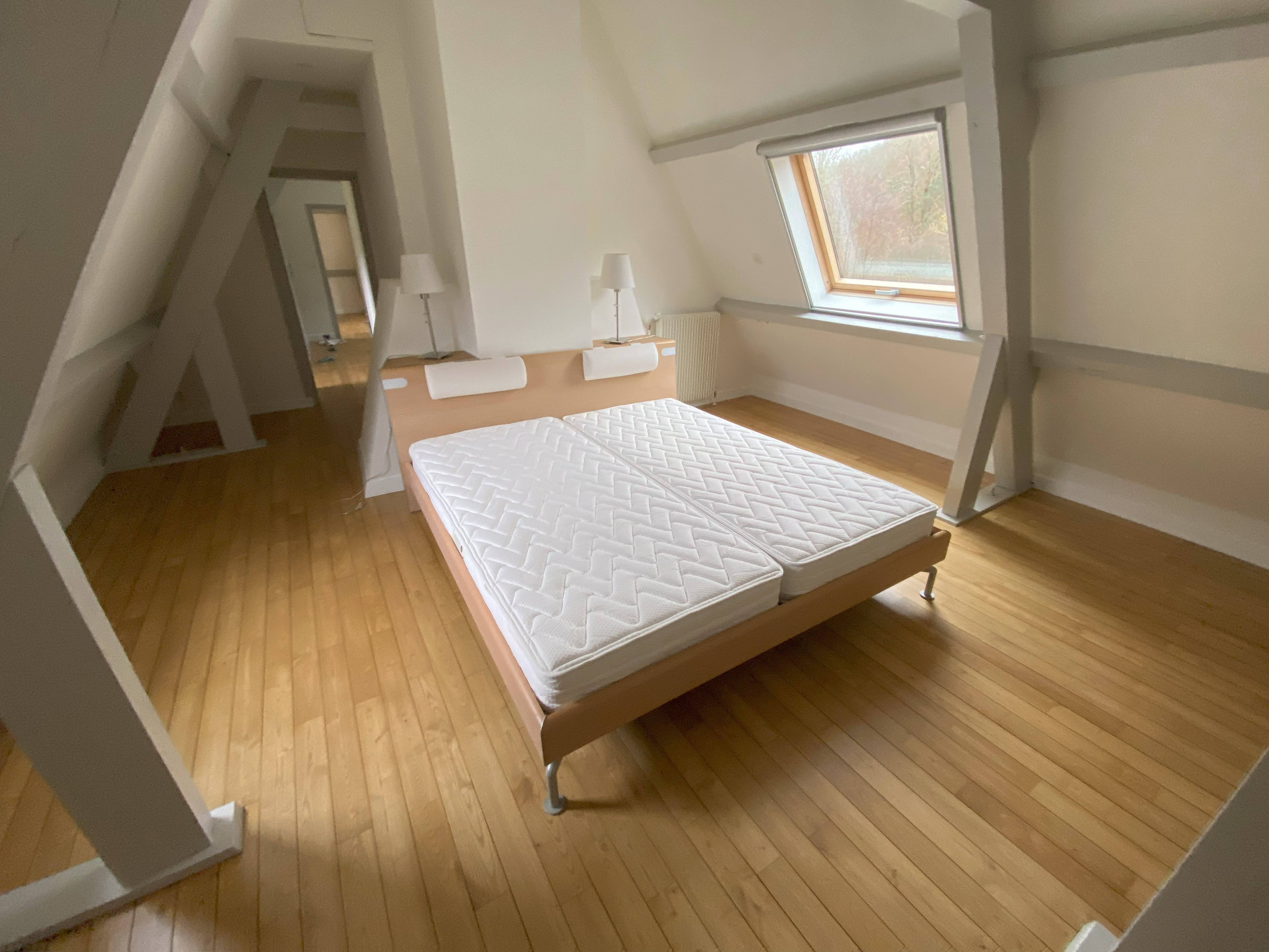 Lit double avec 2 matelas 90cm x 200 cm, placard sur le palier.